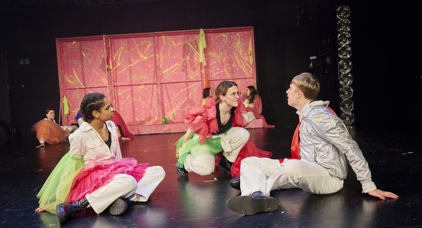 In einem Wechselspiel aus Improvisationen, szenischem Schreiben und szenischem Spiel ist ein Stück entstanden, in dem Machstrukturen etwas entgegengesetzt wird.