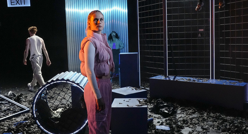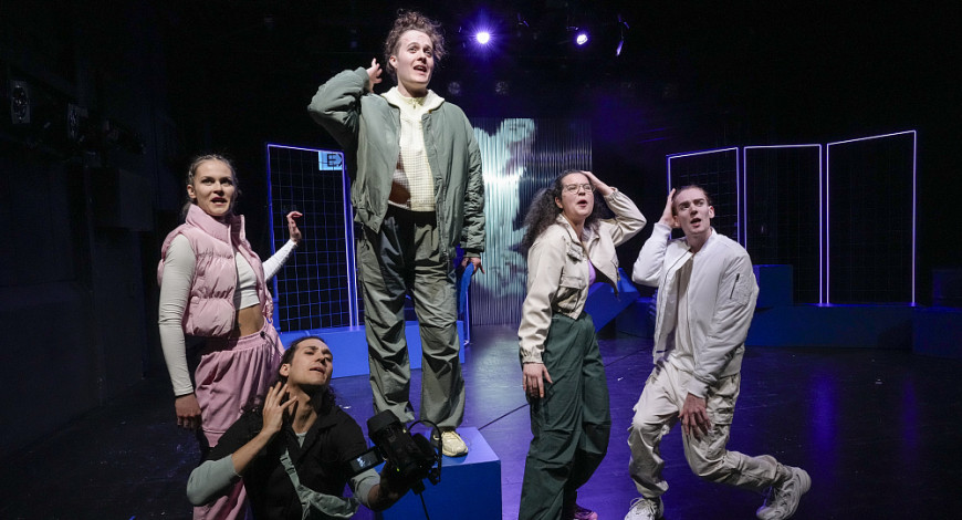 Das Gefüge der Fünf beginnt zu wackeln. Die Körper beben nicht nur vom Beat der Party, sondern zunehmend von der Ungewissheit, ob die Freundschaft am nächsten Geheimnis zerbricht. Choreograf Lin Verleger und Regisseurin Monika Kosik finden dafür eine eigene Körpersprache, die sich mit dem Rausch der Worte verbindet. Autorin Sarah Jäger komponiert in ihrem Jugendroman eine mitreißend pure und humorvolle Sprache. Es entsteht eine multiperspektivische Erzählung von Freundschaften, Zerwürfnissen und Begegnungen zwischen Party-Ekstase und existenziellen Fragen.