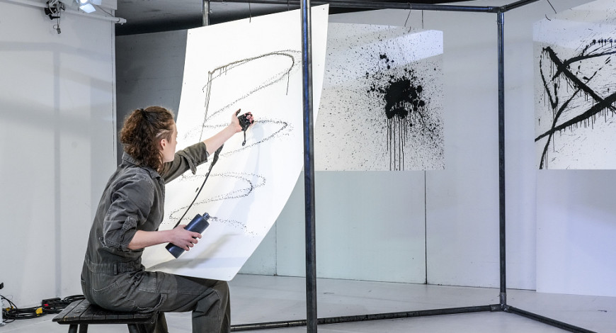 Der preisgekrönte libanesisch-kanadische Autor Wajdi Mouawad hat mit „Im Herzen tickt eine Bombe“ einen sprachgewaltigen und zugleich poetischen wie zärtlichen Monolog geschrieben, der von Trauma-Bewältigung ebenso handelt wie vom Erwachsenwerden. In Zusammenarbeit mit Graffiti-Künstler Cédric Pintarelli alias SWEETUNO kreiert Regisseurin Monika Kosik ein interdisziplinäres Theatererlebnis, in dem Mouawads Text auf Bildende Kunst trifft und das Echo der Gedanken und Emotionen Wahabs auf einer weißen Leinwand in Farben und Formen widerhallt.