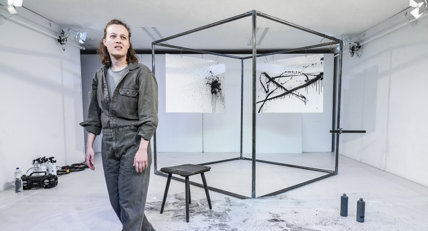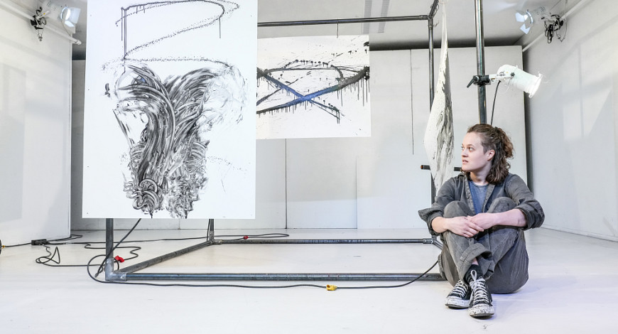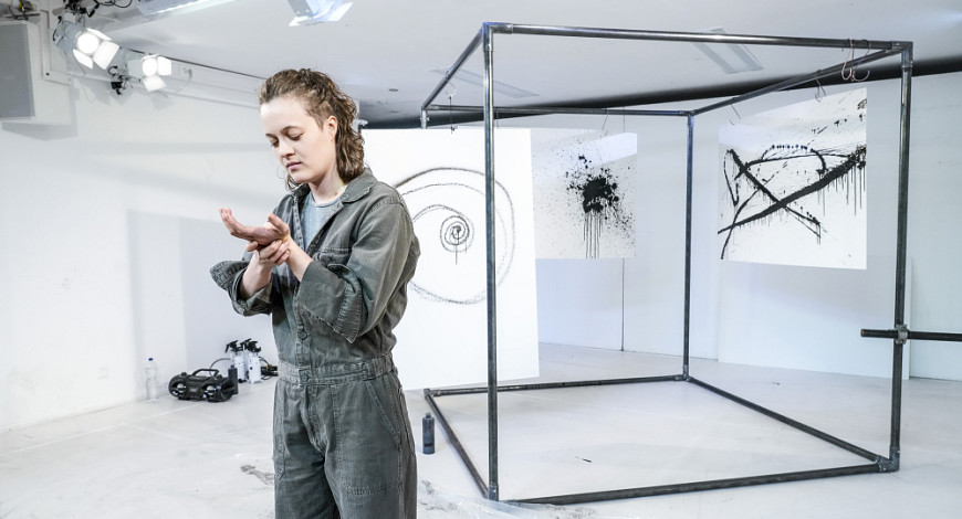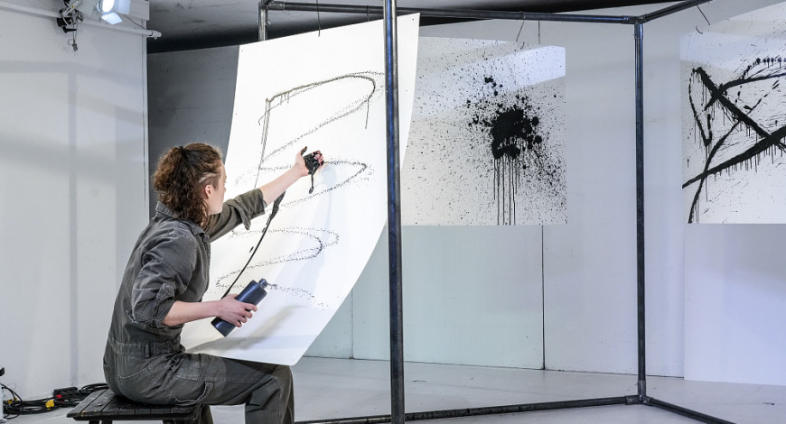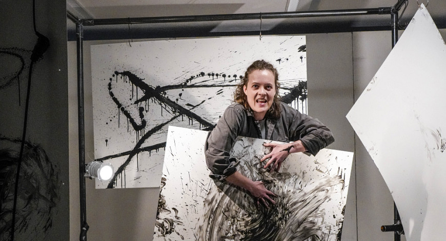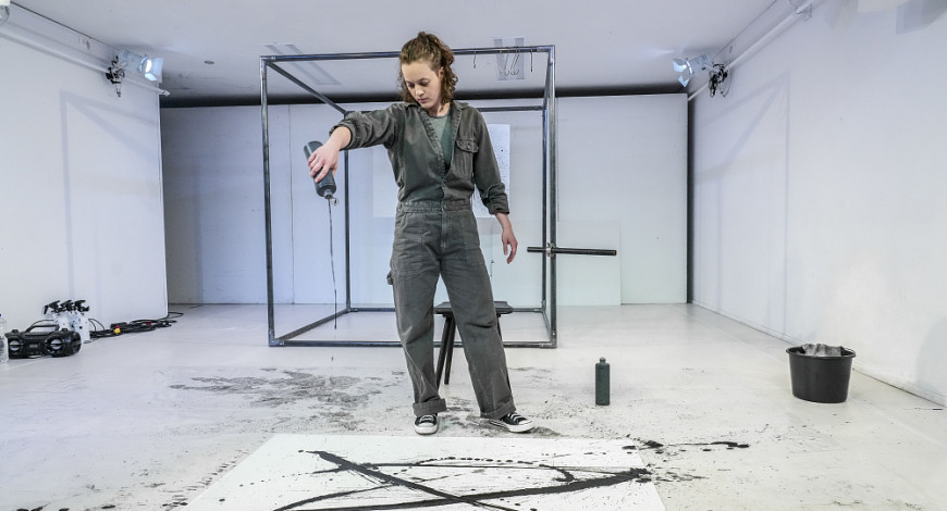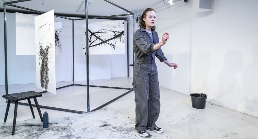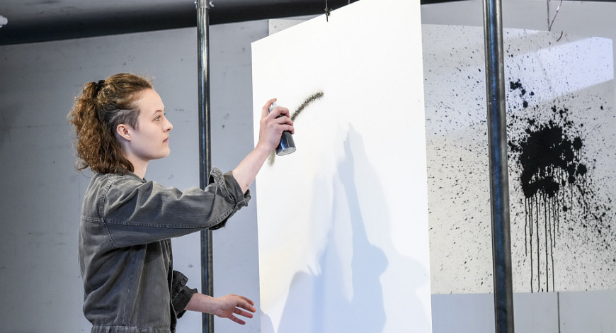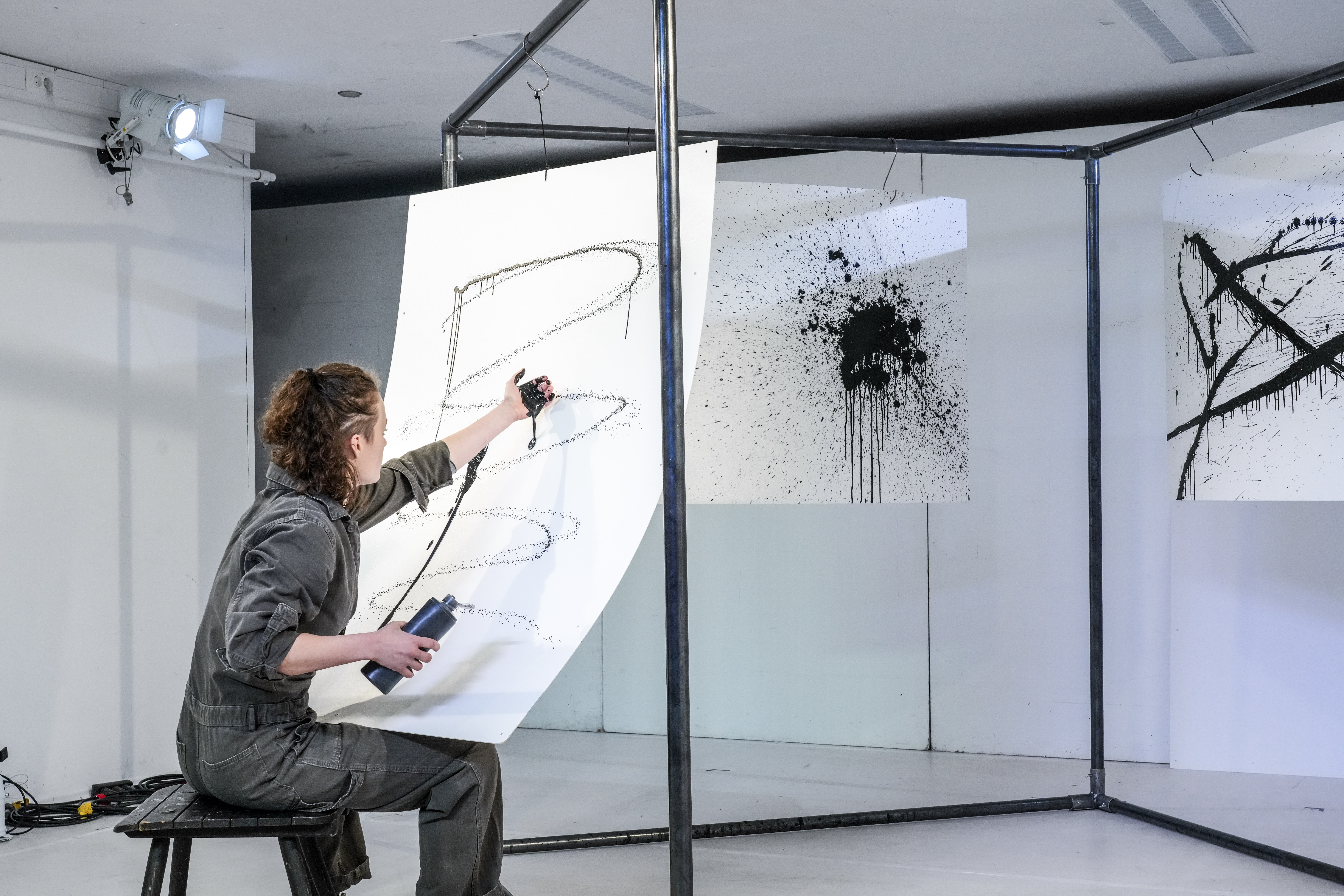 Der preisgekrönte libanesisch-kanadische Autor Wajdi Mouawad hat mit „Im Herzen tickt eine Bombe“ einen sprachgewaltigen und zugleich poetischen wie zärtlichen Monolog geschrieben, der von Trauma-Bewältigung ebenso handelt wie vom Erwachsenwerden. In Zusammenarbeit mit Graffiti-Künstler Cédric Pintarelli alias SWEETUNO kreiert Regisseurin Monika Kosik ein interdisziplinäres Theatererlebnis, in dem Mouawads Text auf Bildende Kunst trifft und das Echo der Gedanken und Emotionen Wahabs auf einer weißen Leinwand in Farben und Formen widerhallt.