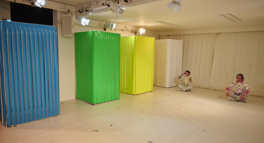 Ausgestattet mit Kopfhörern betreten wir einen Raum, der speziell für uns gemacht ist. Einen Raum, in dem demokratisches Denken, Handeln, Verhandeln, Scheitern und Neu-Aushandeln erprobt wird. Zwischen Wahlkabine, Schulhof, Hinterzimmergespräch, Küche, Ratssaal, Bandprobenraum und antikem Markt- und Versammlungsplatz verhandeln wir spielerisch unser Miteinander-Sein. Wir üben Demokratie, üben sie aus und testen ihre Grenzen. Wir hören zu, wir machen mit, wir treffen Entscheidungen mit- und füreinander – schaffen womöglich eine utopische Gemeinschaft auf Zeit. In einer Umgebung, die uns zusammenbringt: Orte der Begegnung, an denen wir aufeinander eingehen müssen. Indem wir vielen kleinen Entscheidungsfäden folgen, weben wir gemeinsam an einem großen Geflecht: mal geradlinig, mal über Kreuz, mal als geordnetes Muster, mal als verworrenes Knäuel.