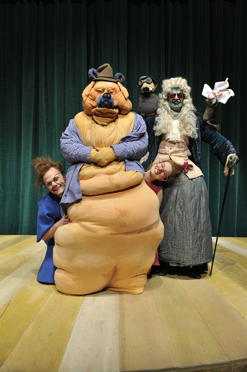 Michael sucht wochenlang einen Schweinekopf, der bei ENSEL UND KRETE verwendet wurde und jetzt irgendwo in der Versenkung verschwunden ist. Das Künstlerische Betriebsbüro schreibt sogar eine Rundmail mit dem Betreff „Wanted: Schweinekopf von Ensel & Krete“: „An Alle: Schweinchen ohne Kopf. Dem Schwein aus Ensel und Krete fehlt der Kopf, dieser ist sehr wertvoll. Hinweise wo dieser ist oder sein kann bitte an Michael und/oder das KJT.“ Nach Tagen läuft plötzlich Michaels Frau majestätisch mit einem fleischigen rosafarbenen Gebilde auf dem Kopf an meiner Bürotür vorbei – ich breche mitten im Satz ab und schaue ihr gebannt hinterher, bis mir klar wird, dass das Schweinehaupt offenbar wieder aufgetaucht ist!