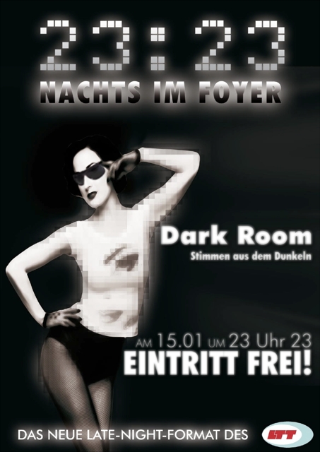 Am kommenden Samstag ist es im LTT-Foyer wieder Zeit für Experimente: Eine neue Folge von 22:22 findet (ausnahmesweise um 23:23 statt) diesmal unter dem Titel "DARK ROOM" – Stimmen aus dem Dunkeln.